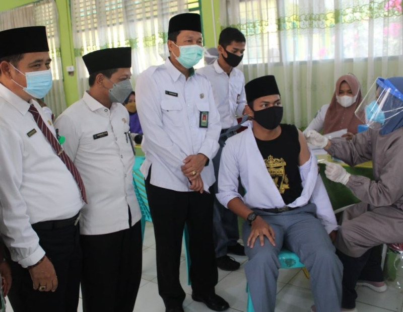 Siswa/i MAN 1 Indragiri Hulu mendapatkan vaksinasi Dalam Rangka serbuan vaksinasi