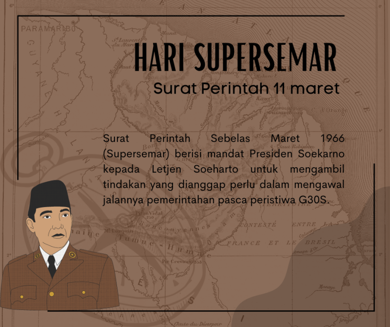 Pada 11 Maret pada 1966 menjadi salah satu momen bersejarah lahirnya Surat Perintah Sebelas Maret alias Supersemar.Supersemar menjadi awal peralihan kekuasaan dari Presiden Sukarno kepada Soeharto. Berikut awal mula peralihan tersebut yang dirangkum dari Jurnal UIN Antasari.Semua berawal dari terjadinya Gerakan 30 September 1965 disingkat G30S yang disebut dalam beberapa versi, oleh unsur Partai Komunis Indonesia (PKI), yang gerakannya secara fisik atau militer dipimpin oleh Letnan Kolonel Untung Sutopo.Letkol Untung adalah Komandan Batalyon I Resimen Cakrabirawa. Gerakan itu berupa pembunuhan beberapa jenderal dan perwira TNI Angkatan Darat dan pengumuman sepihak sekelompok perwira menengah Angkatan Darat yang menamakan diri Dewan Revolusi. Hal itu memicu munculnya gelombang protes, terutama dari kalangan mahasiswa dan tentara.Akibat adanya gerakan makar tersebut, maka negara dan bangsa Indonesia dalam keadaan yang tidak menentu dan penuh saling curiga.Pada tanggal 2 Oktober 1965 setelah keadaan Ibukota Jakarta dapat dikuasai oleh Pasukan RPKAD, maka Mayor Jendral Soeharto menemui Presiden Sukarno di Istana Negara Bogor.Dalam pertemuan tersebut Presiden memutuskan untuk secara langsung memegang tampuk Pimpinan Angkatan Darat, yang semenjak tanggal 1 Oktober 1965 untuk sementara Pimpinan Angkatan Darat dipegang oleh Mayor Jendral Soeharto.Kondisi ekonomi di Indonesia pun semakin sulit. Kemudian Pemerintah pada tanggal 13 Desember 1965 melakukan devaluasi uang rupiah, akibatnya nilai rupiah merosot tajam dan harga 9 kebutuhan pokok melonjak di pasaran.Melihat gejolak ekonomi dan politik seperti ini, dalam keadaan serba tidak puas dan tidak sabar, akhirnya tercetuslah Tri Tuntutan Rakyat, yang disingkat dengan TRITURA yang isinya :1. Pembubaran PKI2. Pembersihan Kabinet dari Unsur-unsur G-30 S/PKI, dan3. Penurunan harga/perbaikan ekonomiMenyadari keadaan negara sulit dan menghadapi gejolak dari masyarakat dan kondisi yang rumit, Presiden Sukarno yang semakin melemah kesehatannya, diadakanlah tindakan yang penting untuk mengatasi hal tersebut.Pada 11 Maret 1966 sore hari, tiga jenderal Angkatan Darat Brigjen Amir Machmud (Panglima Kodam Jaya), Brigjen M Yusuf (Menteri Perindustrian Dasar), dan Mayjen Basuki Rachmat (Menteri Veteran dan Demobilisasi) menghadap Presiden Sukarno di Istana Bogor.Malam itu juga diketahui Presiden selaku Pemimpin Besar Revolusi mengeluarkan suatu “Surat Perintah” kepada Letnan Jendral Soeharto. Surat perintah ini kemudian dikenal dengan nama Surat Perintah 11 Maret disingkat Supersemar.Isi Supersemar :1. Mengambil segala tindakan yang dianggap perlu untuk terdjaminnja keamanan dan ketenangan, serta kestabilan djalannja pemerintahan dan djalannja Revolusi, serta mendjamin keselamatan pribadi dan kewibawaan Pimpinan Presiden/Panglima Tertinggi/Pemimpin Besar Revolusi/Mandataris M.P.R.S. demi untuk keutuhan Bangsa dan Negara Republik Indonesia, dan melaksanakan dengan pasti segala adjaran Pemimpin Besar Revolusi.2. Mengadakan koordinasi pelaksanaan perintah dengan Panglima-Panglima Angkatan Lain dengan sebaik-baiknja.3. Supaja melaporkan segala sesuatu jang bersangkut paut dalam tugas dan tanggung-djawabnja seperti tersebut diatas.