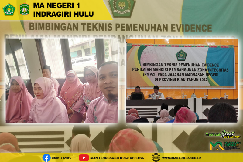 Kamis 4 Agustus 2022, 6 orang anggota TIN ZI MAN 1 Inhu mengikuti BIMTEK Evidence Penilaian Mandiri Pembangunan Zona Integritas Madrasah Negeri Se Provinsi Riau di Aula MAN 2 Pekanbaru.