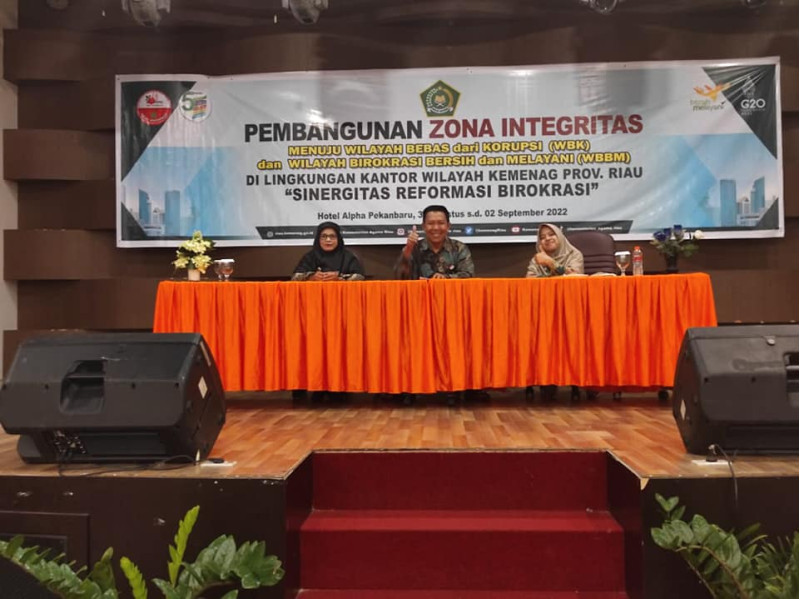 Mengikuti bimtek pembangunan zona integritas di lingkungan kantor wilayah kemenag Prov.Riau di hotel alpha pekanbaru. Bimtek ini berlangsung selama 4 hari mulai dari tanggal 30 agustus 2022 s/d 2 september 2022. Bimtek kali ini mengusung tema "SINERGITAS REFORMASI BIROKRASI" yang bertujuan untuk Menuju Wilayah Bebas dari Korupsi (WBK), dan Wilayah Birokrasi Bersih dan Melayani (WBBM). (hd)