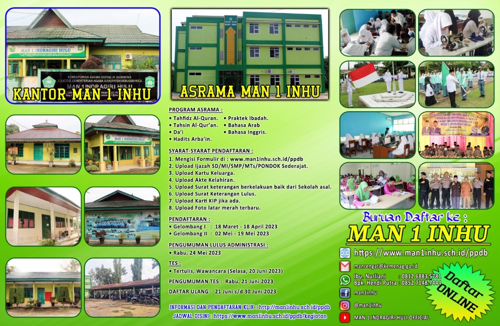 Pendaftaran dilakukan secara online di website www.man1inhu.sch.id/ppdb